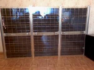 Каждая панель состоит из двух половин, складывающихся “книжкой” на дверных петлях. Обе половины - коробки из оргстекла. Оргстекло выбрано из следующих соображений:- Меньший (по сравнению со стеклом или поликарбонатом) коэффициент преломления дает меньшие потери энергии за счет отражения света.- Меньшая прозрачность для инфракрасного излучения снижает ненужный нагрев ячеек , сопровождаемый уменьшением к.п.д.- Легкость и ударостойкость, важные при мобильном использовании- Простота мех. обработки